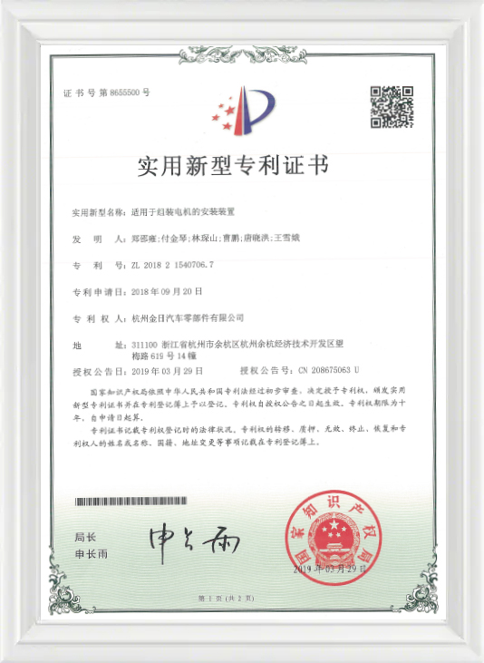 Bruksmodellsertifikat for monteringsenhet egnet for montering av motorer